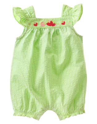 We also picked up a couple things at gymboree. This little jumper thingy (um, I don't know the "real" lingo yet) is super cute. I like that it's very 'summery' for our little summer girl. We also got this little matching hat.